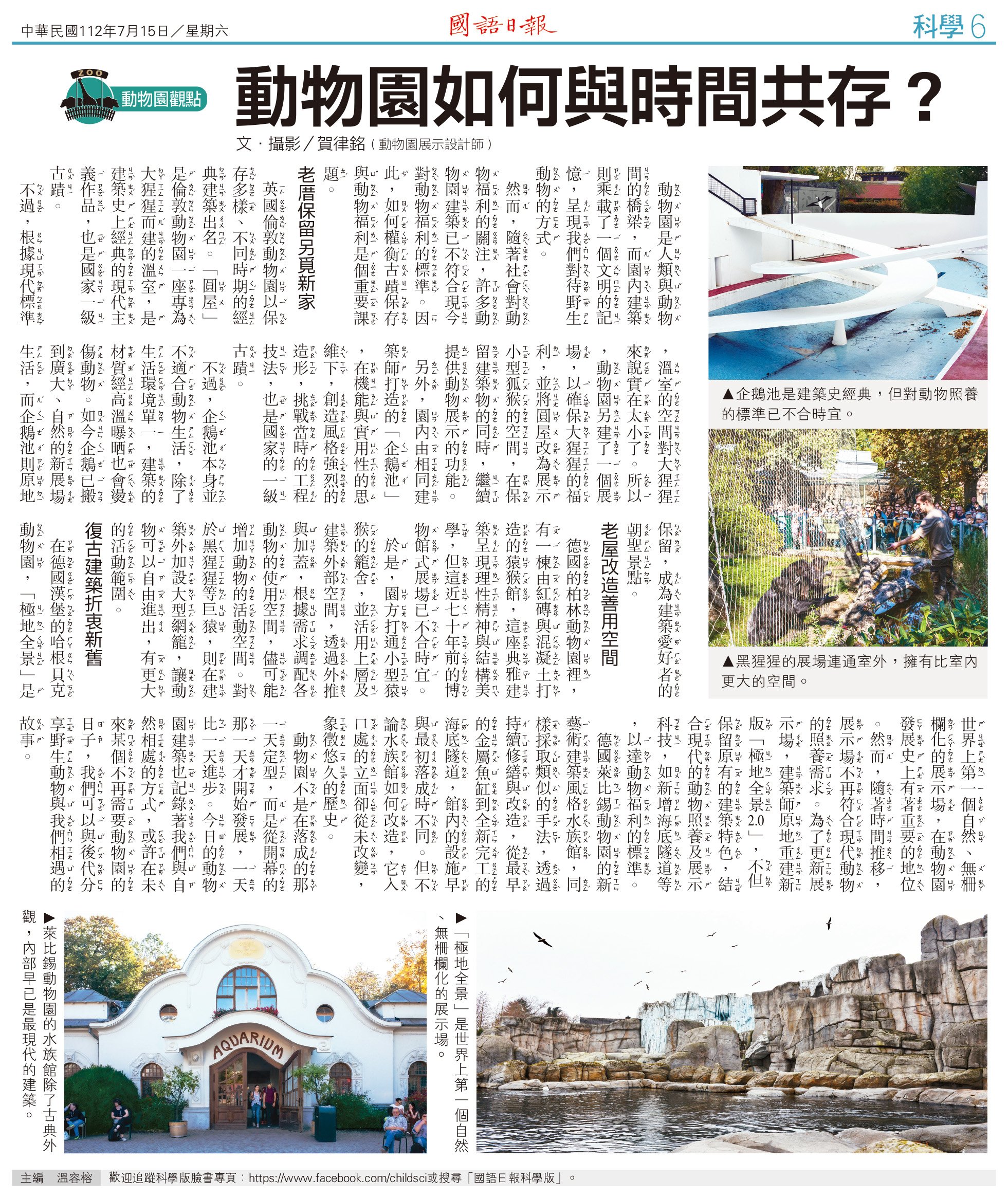 Contributing monthly newspaper articles on zoos and history, exploring the cultural elements that reflect the relationship between humans and wildlife.